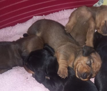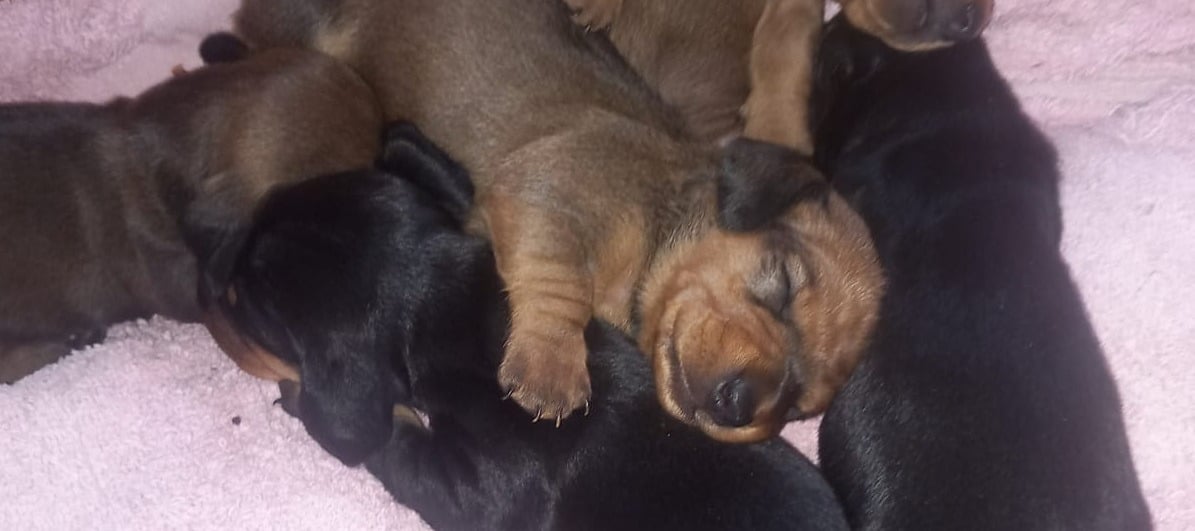 Après avoir passé mon ACACED (Attestation de Connaissances pour les Animaux de Compagnie d'Espèces Domestiques), j'ai créé mon propre élevage de Teckel, la race de chien qui m'accompagne depuis longtemps. Mon histoire avec les teckels a commencé avec Vegas, un rescapé de l'Île de la Réunion. L'addiction s'est petit à petit renforcée, et la joyeuse troupe s'est agrandie, année après année.