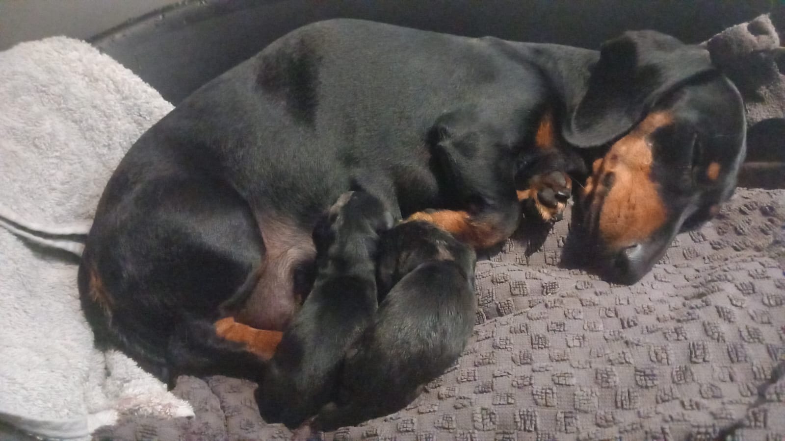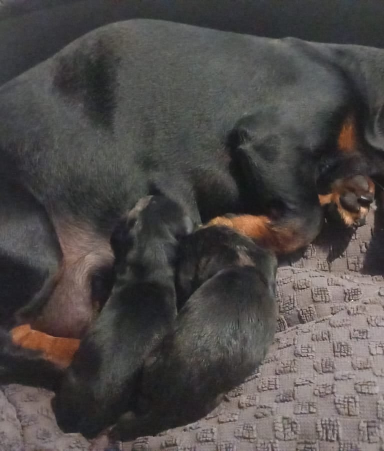 Notre petite Valentine vient d'accoucher de ses chiots, tous deux Arlequins !